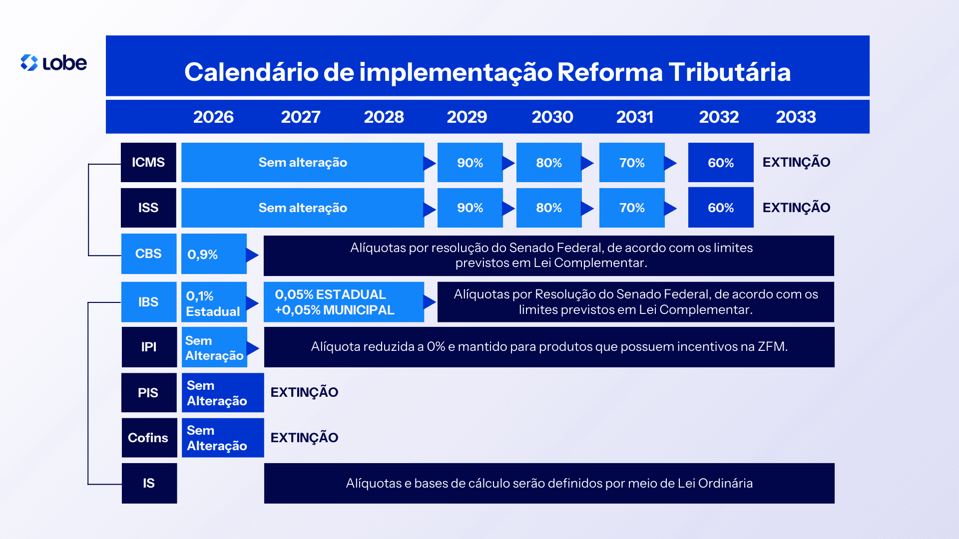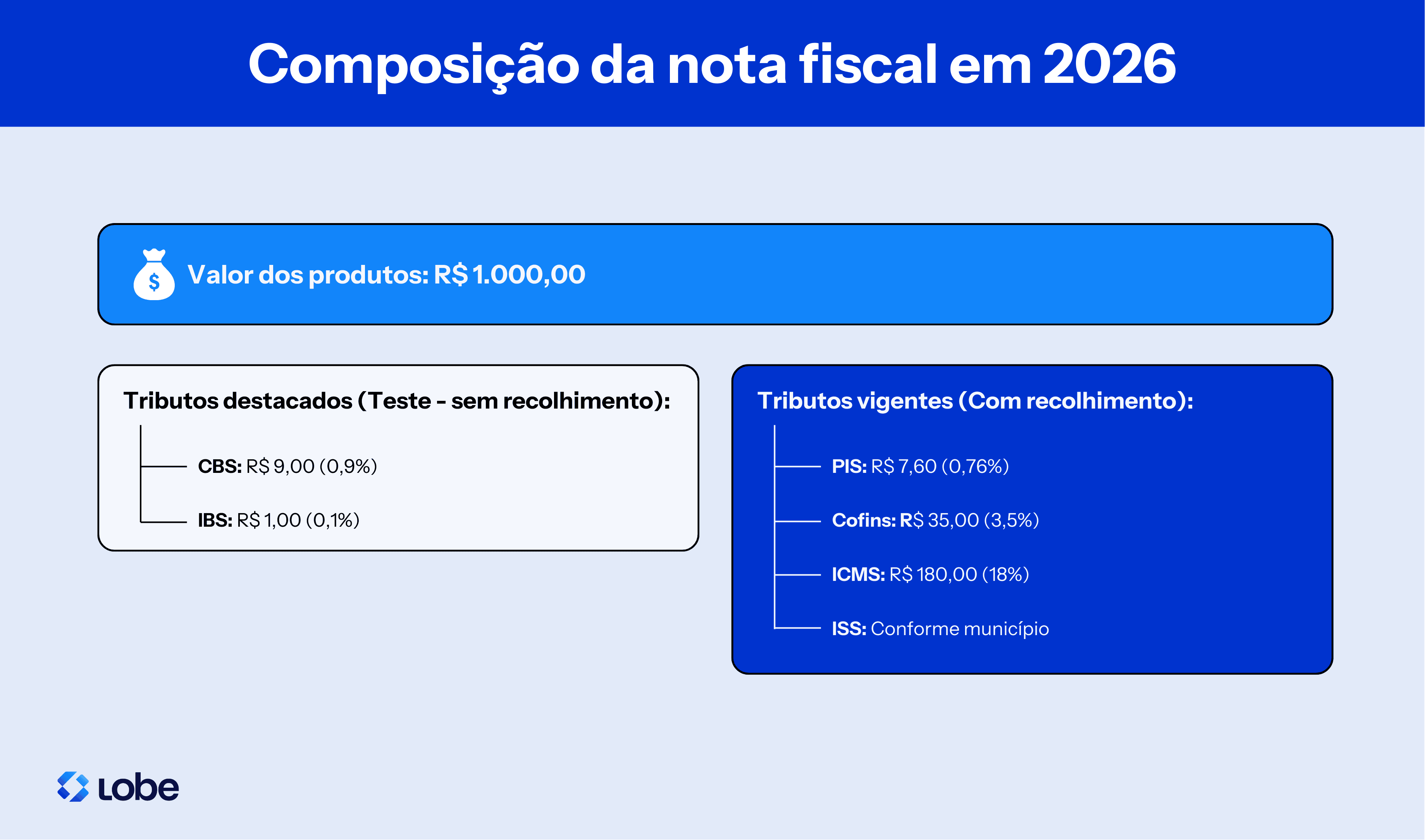 Essas alíquotas não serão recolhidas em 2026. A proposta é permitir que empresas e governos calibrem seus sistemas, ajustem processos e capacitem equipes para a transição.